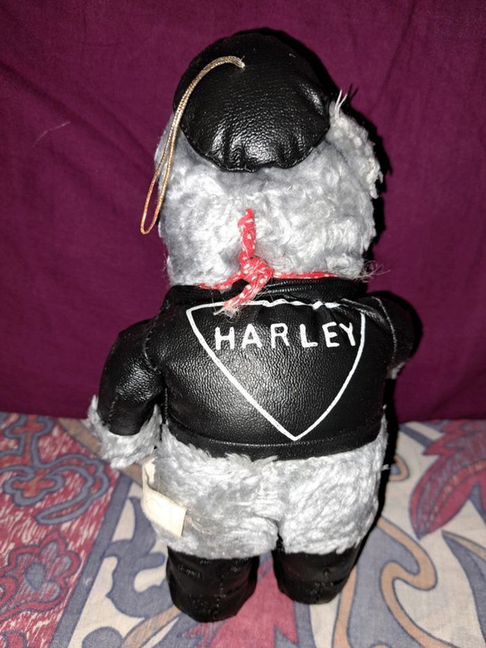 Voici une adorable peluche représentant un chien habillé comme un motard ! Cette peluche est très mignonne avec son blouson en simili cuir noir et ses bottes assorties. Elle a un look de vrai biker avec son casque et ses lunettes de soleil. Parfait pour les amateurs de motos et de chiens, cette peluche apportera une touche de fun et de personnalité à votre décoration. Elle est en très bon état et prête à trouver une nouvelle maison aimante ! - Peluche chien biker - Blouson et bottes en simili cuir noir - Casque et lunettes de soleil - Hauteur : 22 cm - Très bon état - Idéal pour les fans de motos et d'animaux
