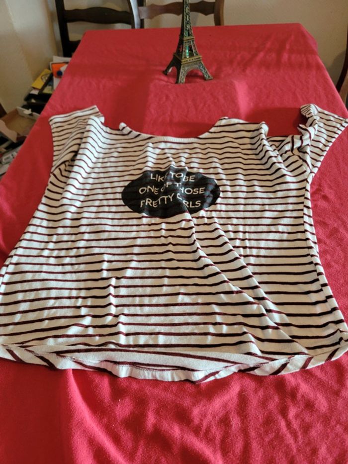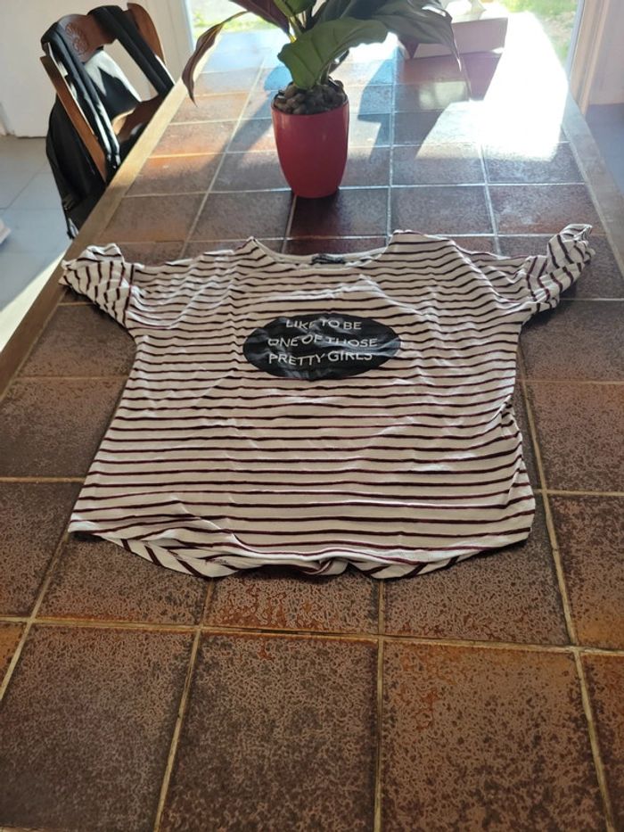 Très bon état Les dimensions sont prises à plat Dimensions Aisselles à aisselles 52 cm Longueur 54 cm #femme38jegu #inextensojegu #sjegcarton54 🎁VIDE DRESSING 🎁Envoi dans les 2/3 jours. 🎁A partir de 10 € d achat ( ou 8 articles) , j offre un article ( de votre choix maximum 2 €,) 🎁 🎁Tout est notifié, il suffit de cliquer sur le lien dans l annonce  🎁N hésitez pas à faire vos prix 🤗 🎁À bientôt 🔜😀