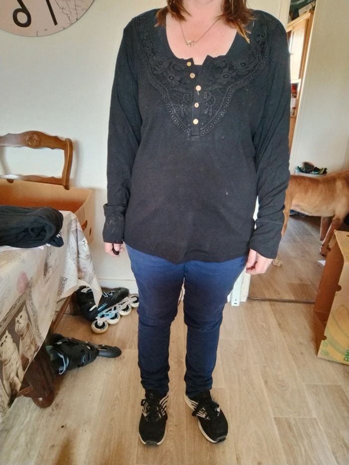 Très bon état Étiquette de composition et taille manquantes Les dimensions sont prises à plat Dimensions aiselles à aiselles 60 cm #femme44jegu #sjegcarton58 🎁VIDE DRESSING 🎁Envoi dans les 2/3 jours. 🎁A partir de 10 € d achat ( ou 8 articles) , j offre un article ( de votre choix maximum 2 €,) 🎁 🎁Tout est notifié, il suffit de cliquer sur le lien dans l annonce 🎁N hésitez pas à faire vos prix 🤗 🎁À bientôt 🔜