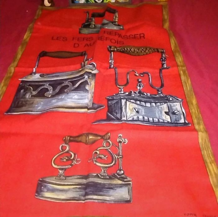 Torchon les fers à repasser d autrefois 72*47 cm - photo numéro 1