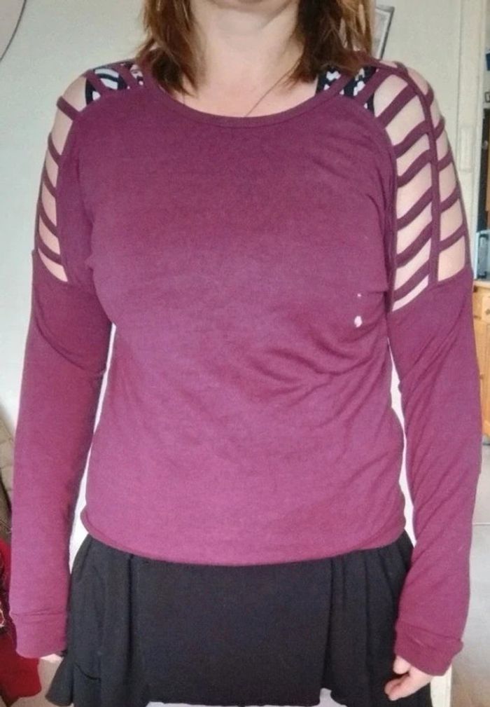 Très Bon état, tâche sur le bas Les dimensions sont prises à plat Dimensions Aisselles à aisselles 56 cm Longueur 60 cm #femme36jegu #fille16ansjegu #sjegcarton73 #amisujegu 🎁VIDE DRESSING 🎁Envoi dans les 2/3 jours. 🎁A partir de 10 € d achat ( ou 8 articles) , j offre un article ( de votre choix maximum 2 €,) 🎁 🎁Tout est notifié, il suffit de cliquer sur le lien dans l annonce  🎁N hésitez pas à faire vos prix 🤗 🎁À bientôt 🔜😀