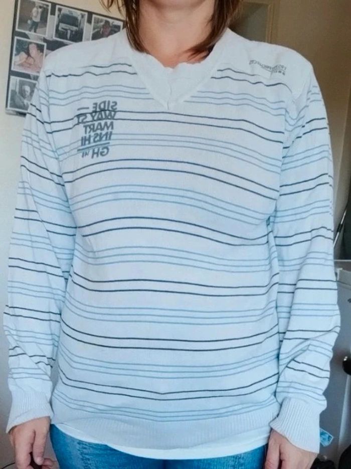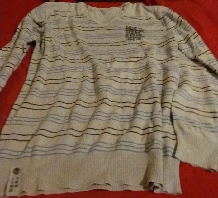 Bon état, taché de part et d'autre. Petit trou sur manches étiquette de composition manquante #homme38jegu #cajegu #cetajegu #sjegcarton81 Les dimensions sont prises à plat Dimensions Aisselles à aisselles 48 cm  🎁VIDE DRESSING 🎁Envoi dans les 2/3 jours. 🎁A partir de 10 € d achat ( ou 8 articles) , j offre un article ( de votre choix maximum 2 €,) 🎁 🎁Tout est notifié, il suffit de cliquer sur le lien dans l annonce  🎁N hésitez pas à faire vos prix 🤗 🎁À bientôt 🔜😀