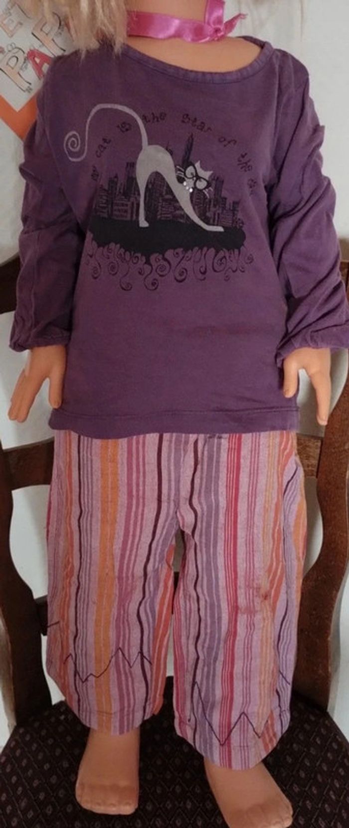 Pantalon, bon état, Vertbaudet T-shirt, tâche de décoloration, in extenso #fille2ansjegu #fille24moisjegu #chatjegu #vertbaudetjegu #sjegcarton75 Les dimensions sont prises à plat Aisselle à aisselle 27 cm Longueur 33 cm Bas 40 cm 🎁VIDE DRESSING 🎁Envoi dans les 2/3 jours. 🎁A partir de 10 € d achat ( ou 8 articles) , j offre un article ( de votre choix maximum 2 €,) 🎁 🎁Tout est notifié, il suffit de cliquer sur le lien dans l annonce 🎁N hésitez pas à faire vos prix 🤗 🎁À bientôt 🔜