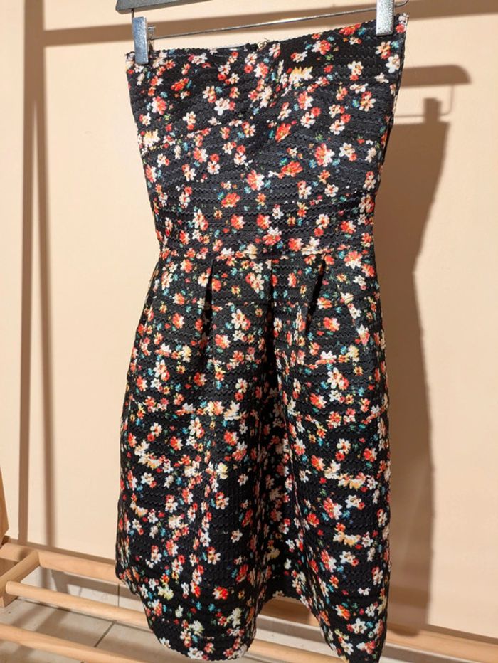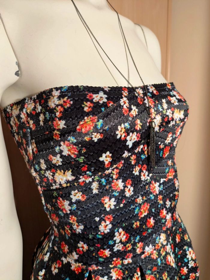 💐Magnifique robe bustier 💐 Noire a motif floral Matière rigide Taille xs mais selon les cm correspond a un xxs ( Poitrine 74-76cm/ taille 55-57 cm) Taille en cm sur photo ⭐ Autres articles de mon dressing de même taille : #femmeXXS_melaa34