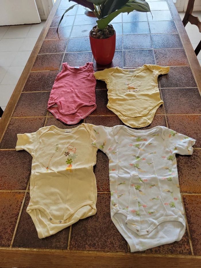 Très Bon état, 1 er motif girafe sans marque 2 eme et 3 ème motif puzzle, mots d enfants 4 ème sans manches petit bateau body débardeur Les dimensions sont prises à plat Dimensions Aisselles à aisselles 23 cm ( 20 cm pour le dernier) Longueur 33 cm ( numéro 2 et 3 ); 27 cm pour les deux autres #garcon6moisjegu #fille6moisjegu #mixte6moisjegu #puzzlejegu #girafejegu #petitbateaujegu #motsdenfantsjegu #sjegcarton68 🎁VIDE DRESSING 🎁Envoi dans les 2/3 jours. 🎁A partir de 10 € d achat ( ou 8 articles) , j offre un article ( de votre choix maximum 2 €,) 🎁 🎁Tout est notifié, il suffit de cliquer sur le lien dans l annonce 🎁N hésitez pas à faire vos prix 🤗 🎁À bientôt 🔜😀