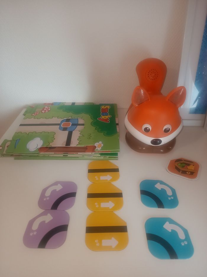 2 modes sont inclus: - Mode "jeu": votre enfant pourra apprendre les bases de la programmation avec le plateau inclus. Il lui suffira de commander le renard à l'aide des cartes de direction afin qu'il puisse atteindre la zone demande. Cela lui permettra également d'apprendre à se repérer dans l'espace. - Mode "free": votre enfant pourra s'initier à la programmation en toute liberté. Il pourra balader son renard grâce aux cartes de direction sans le plateau de jeu.🚧
