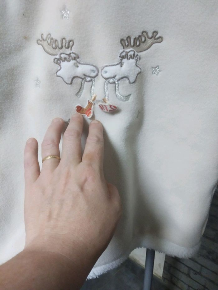 Peu porté Les dimensions sont prises à plat Dimensions Aisselles à aisselles 32 cm Longueur 45 cm Motif Rennes Les pieds tiennes plus en place, peut être avec un produit spécial ou de la laque #fille18moisjegu #noeljegu #noel #renne #sjegcarton65 🎁VIDE DRESSING 🎁Envoi dans les 2/3 jours. 🎁A partir de 10 € d achat ( ou 8 articles) , j offre un article ( de votre choix maximum 2 €,) 🎁 🎁Tout est notifié, il suffit de cliquer sur le lien dans l annonce 🎁N hésitez pas à faire vos prix 🤗 🎁À bientôt 🔜😀