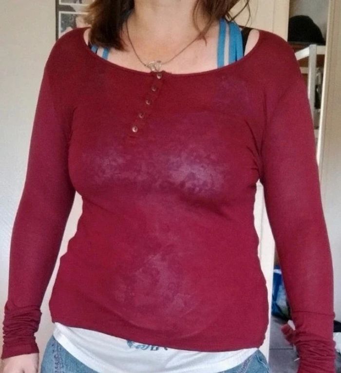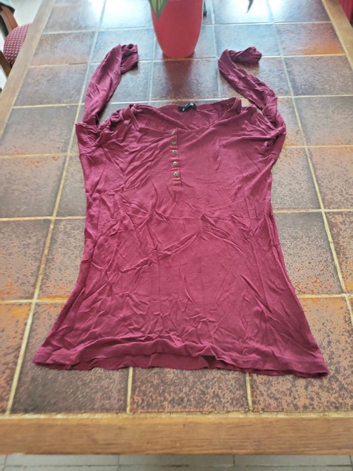 Peu porté #femme36jegu #fille16ansjegu #jennyferjegu #sjegcarton82 Les dimensions sont prises à plat Dimensions Aisselles à aisselles 43 cm 🎁VIDE DRESSING 🎁Envoi dans les 2/3 jours. 🎁A partir de 10 € d achat ( ou 8 articles) , j offre un article ( de votre choix maximum 2 €,) 🎁 🎁Tout est notifié, il suffit de cliquer sur le lien dans l annonce 🎁N hésitez pas à faire vos prix 🤗 🎁À bientôt 🔜😀
