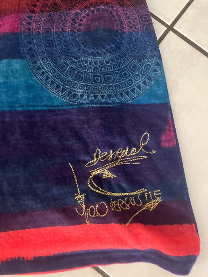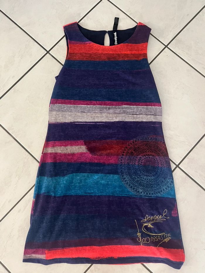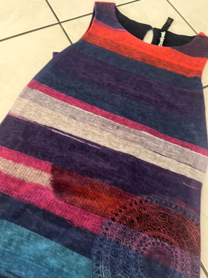 #robe #desigual #neuve #rayee #multicolore #violet #orange #bleu #blanc #rose #bouton #mandala #tailles #small (1)