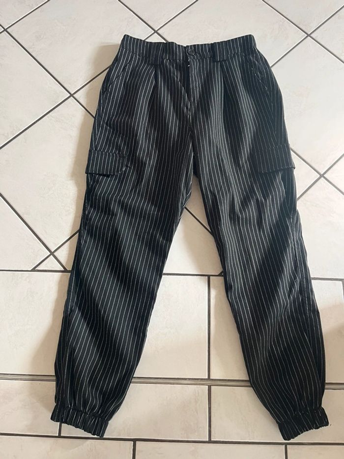 #pantalon #cargo #raye #noir #blanc #poches #bouton #tirette #jennyfer #taille40 (1)