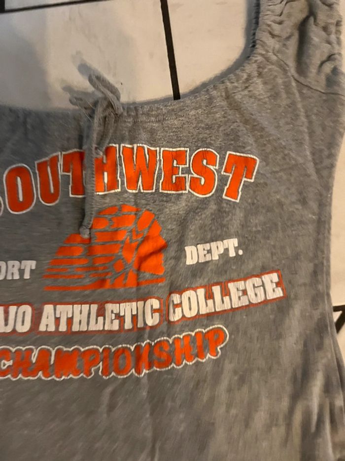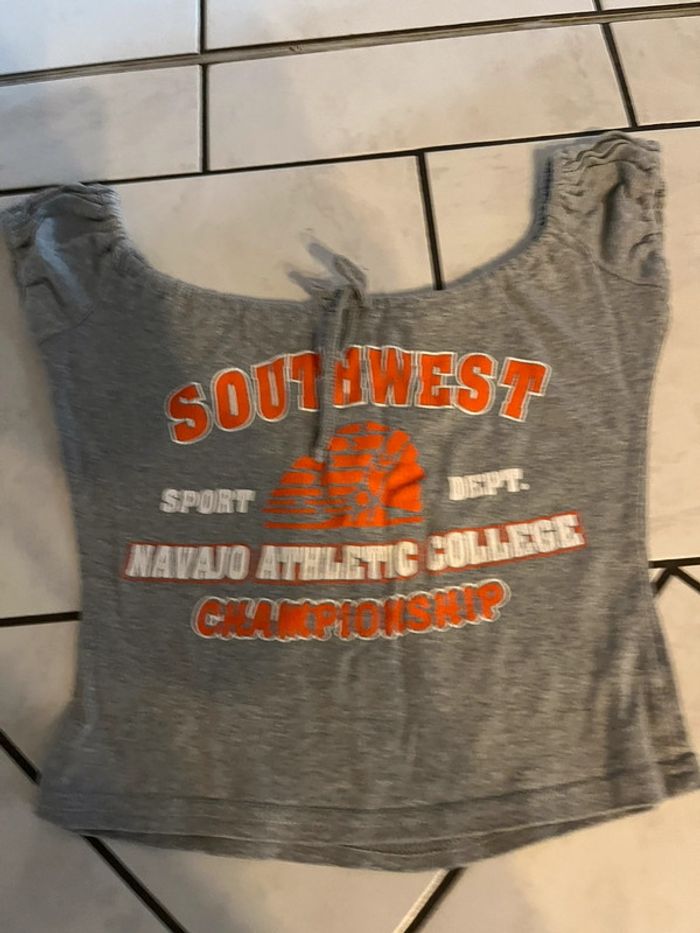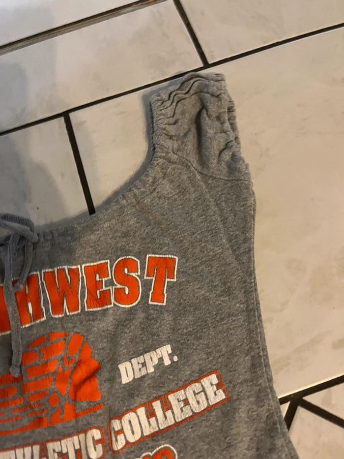 #top #haut #breloques #court #noeud #lacet #reglable #gris #orange #epaulesdenudées #southwest #sport #championship #athletic #college #blanc #jennyfer #small