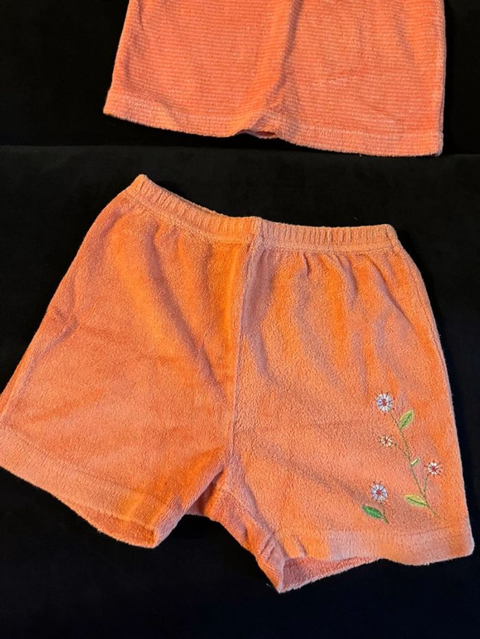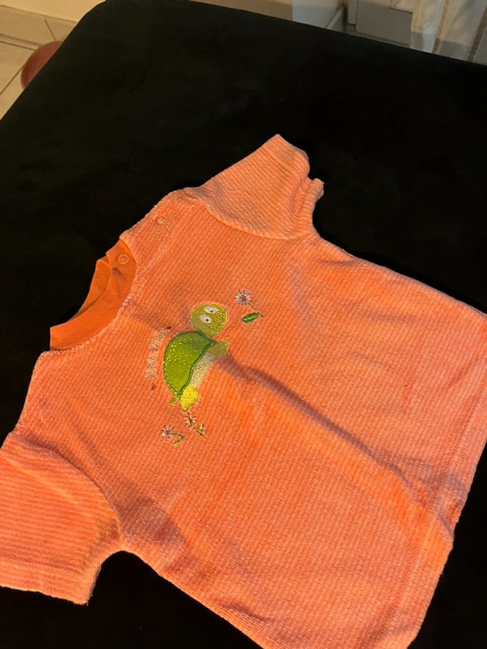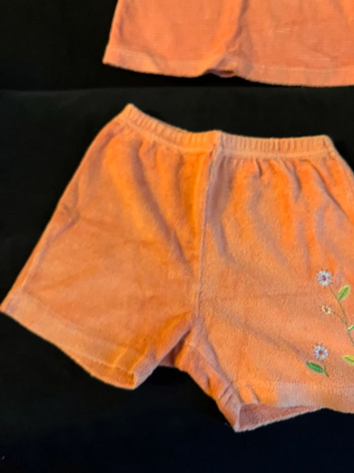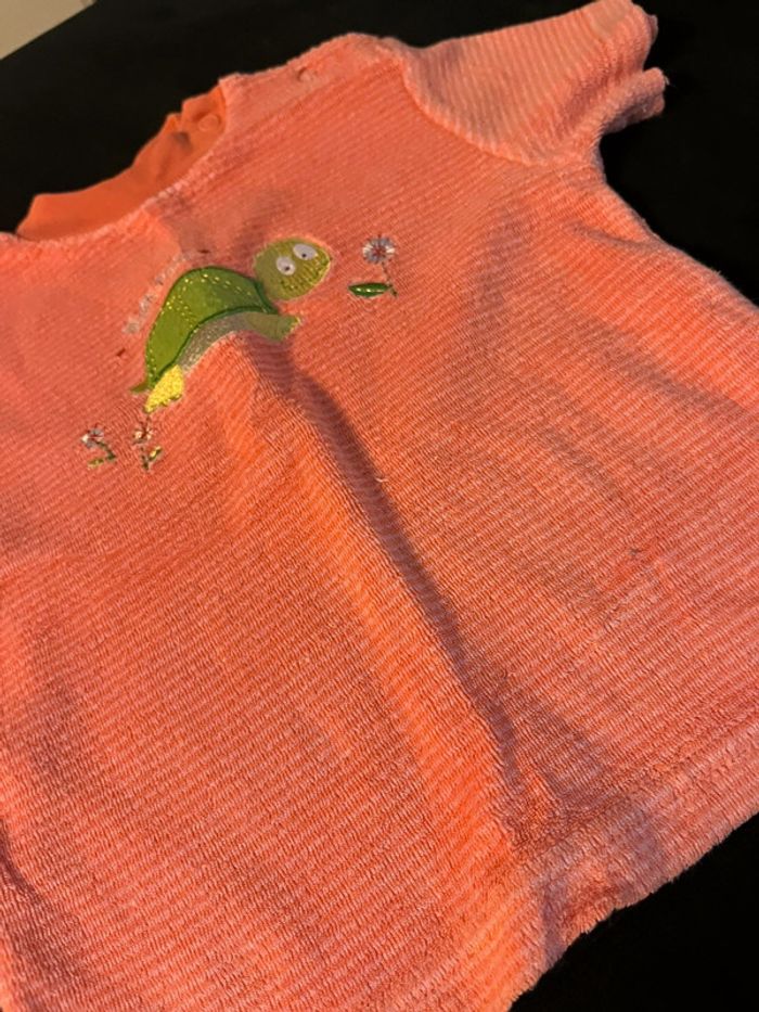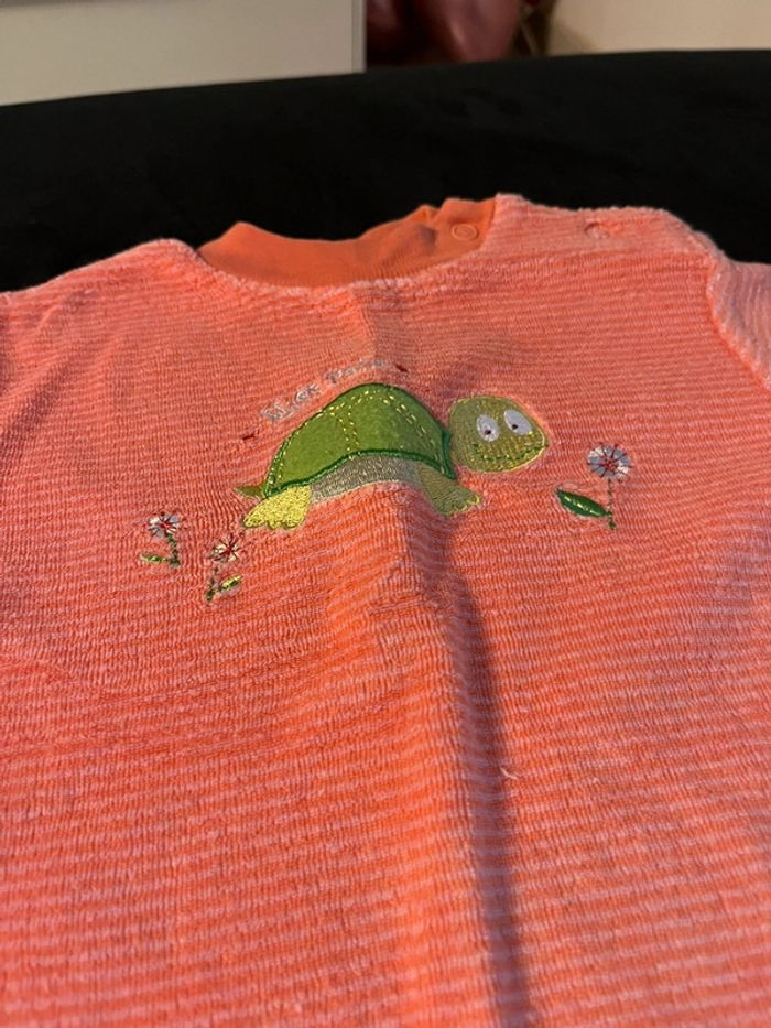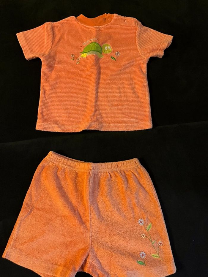#ensemble #corail #orangé #rayé #tshirt #short #tortue #fleurs #mixte #misspata #playskool #18mois