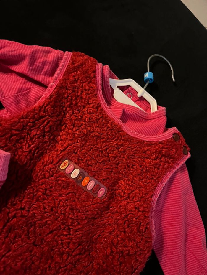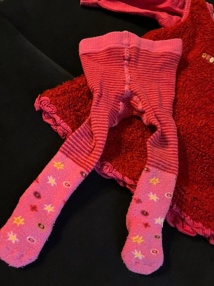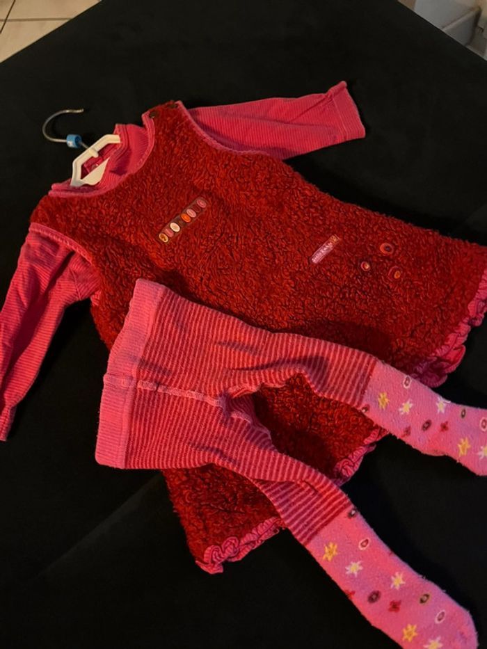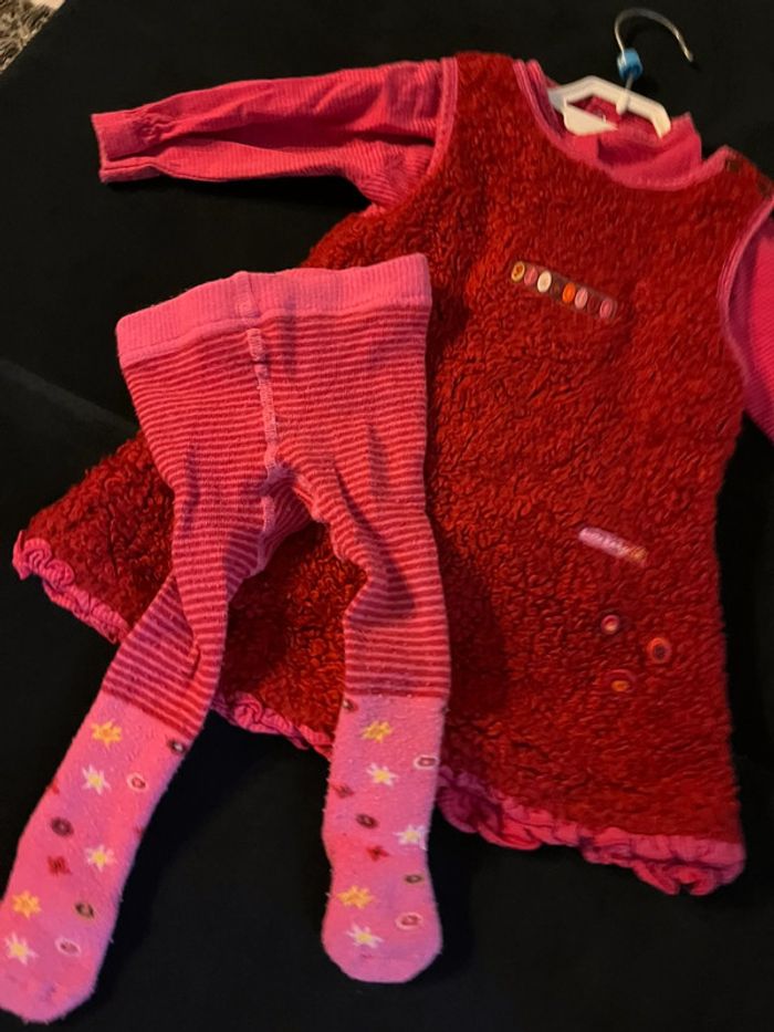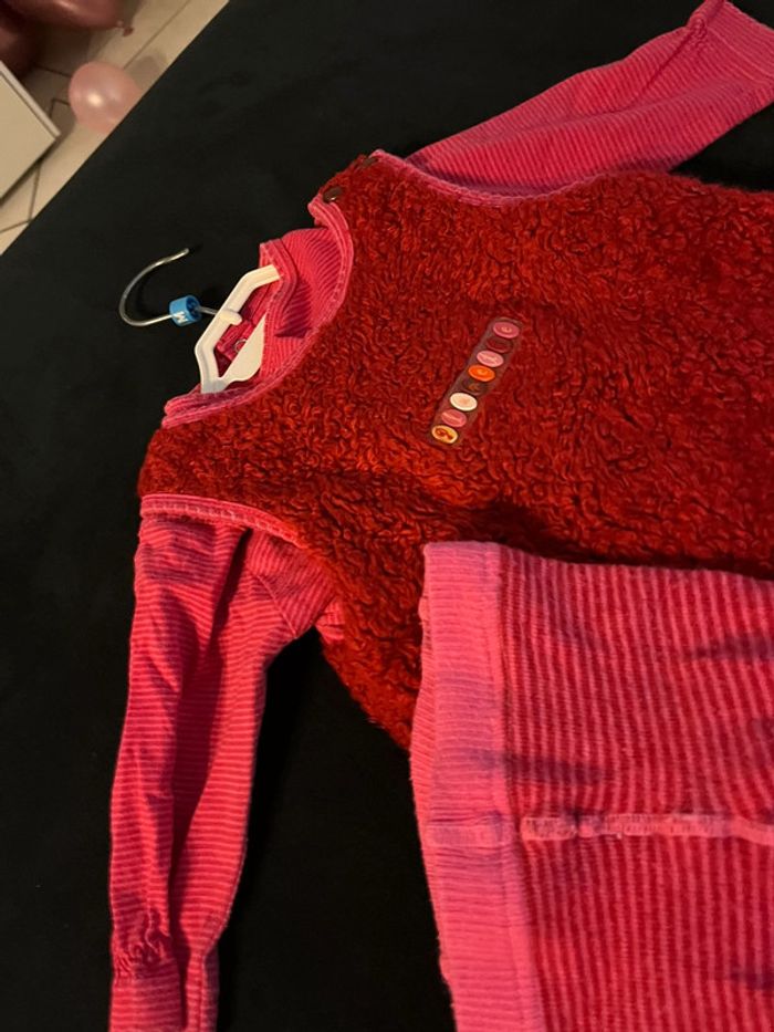#ensemble #rose #pull #robe #collants #6mois #raye #rouge #boutons #sucredorge