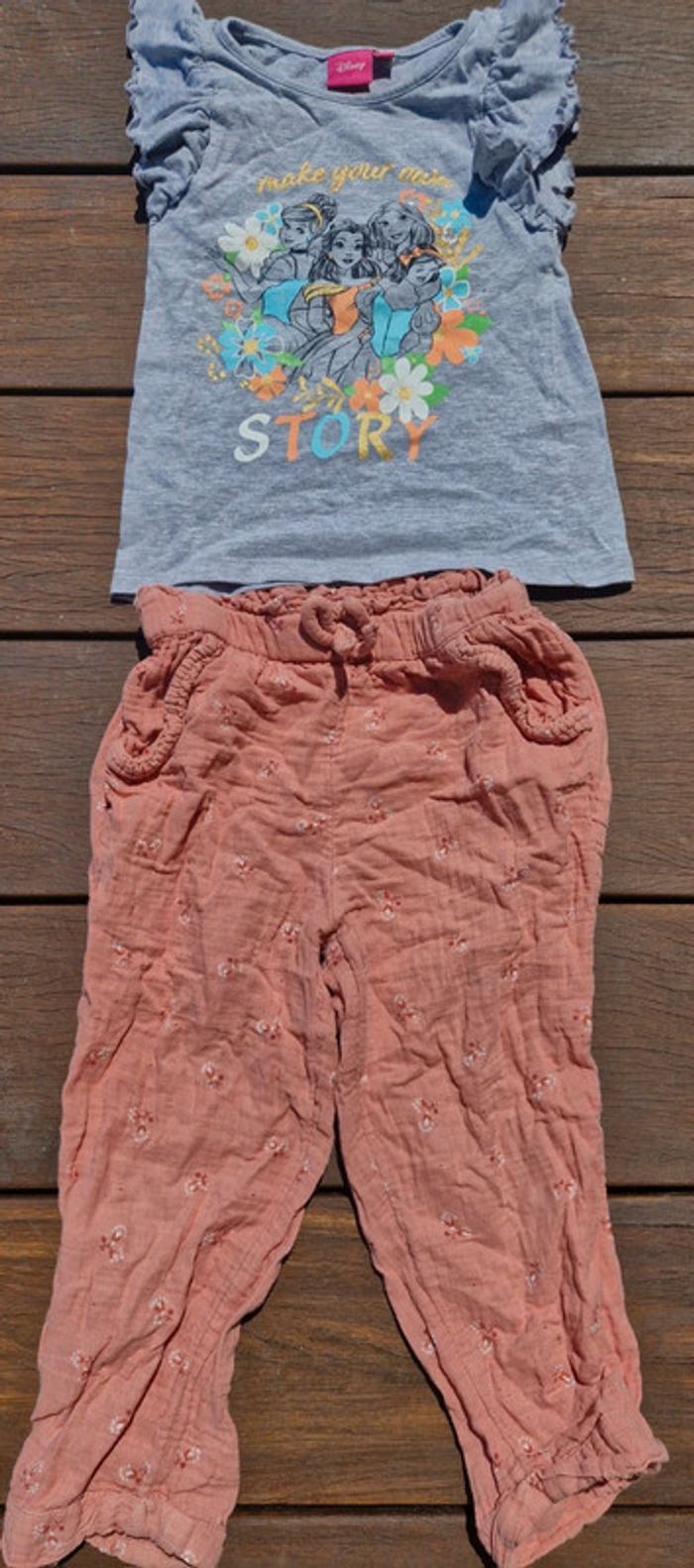 Ensemble pantalon gaze de coton Vertbaudet et débardeur Disney