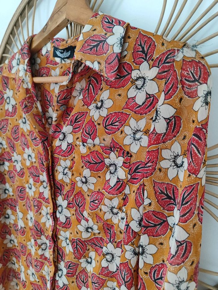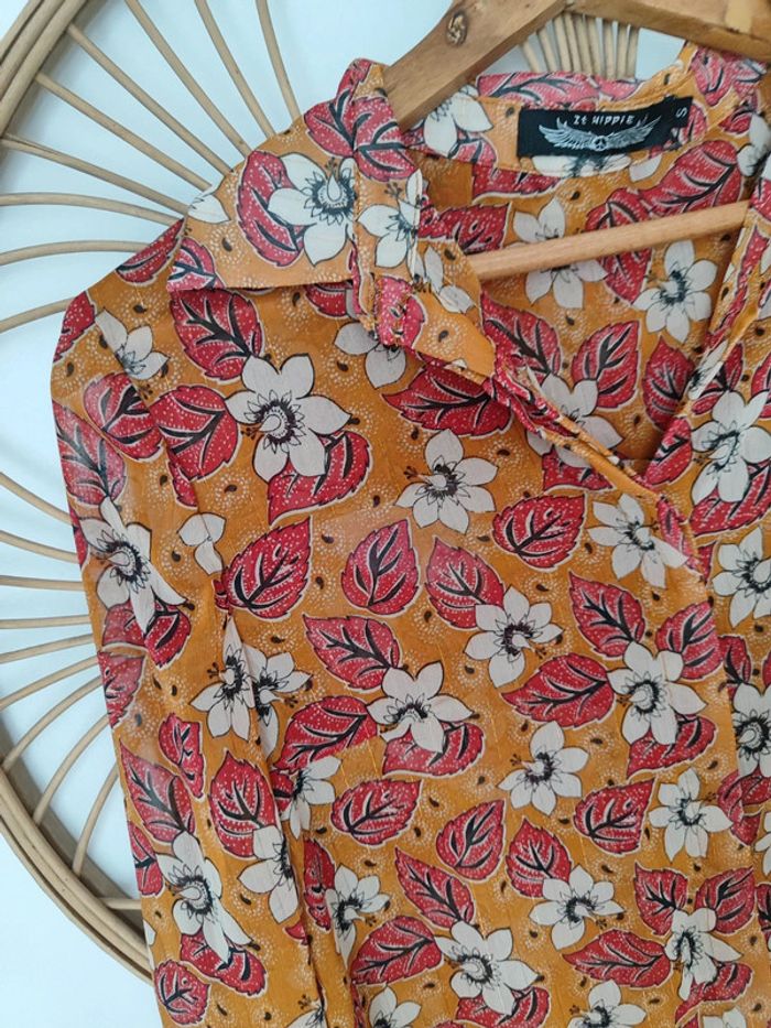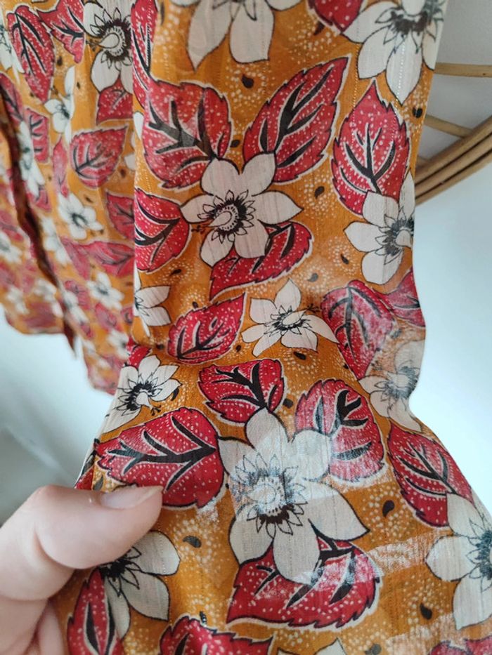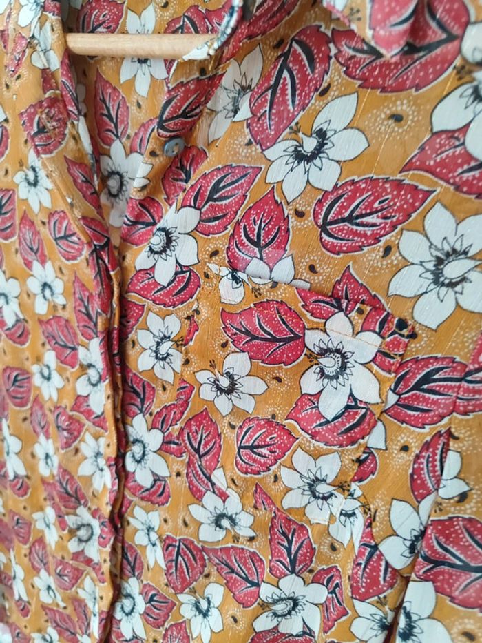 Blouse moutarde Fleurie avec fils dorés Taille S