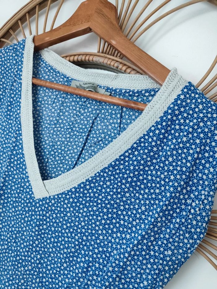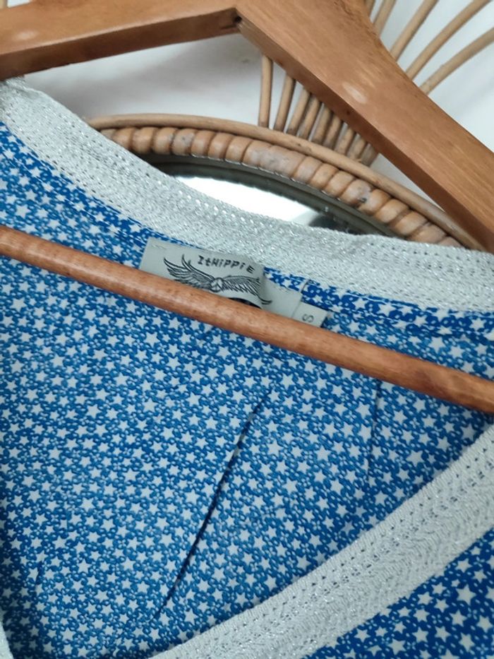 Blouse sans manches bleu avec étoiles et liseré argenté au niveau du décolleté It hippie taille S Parfait état