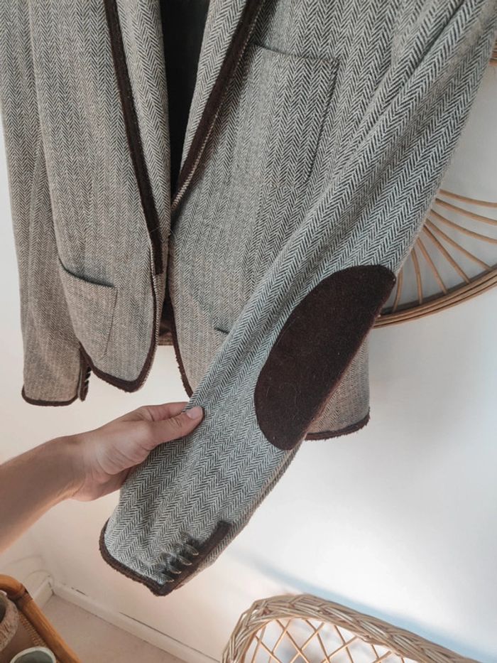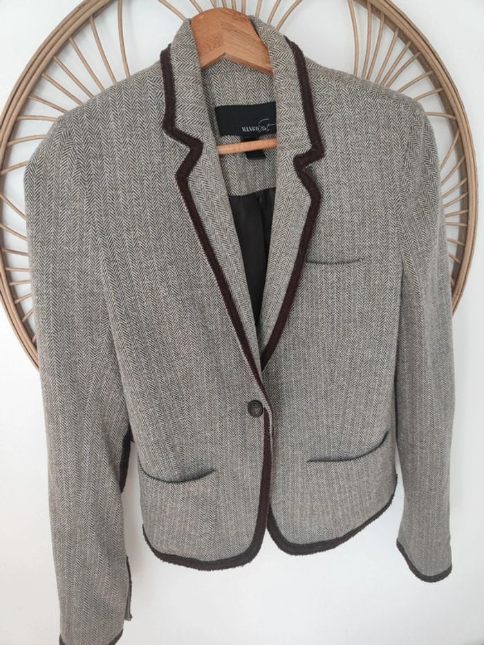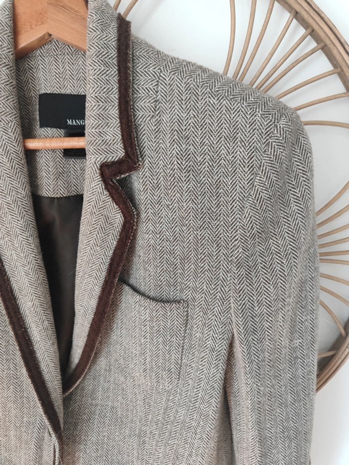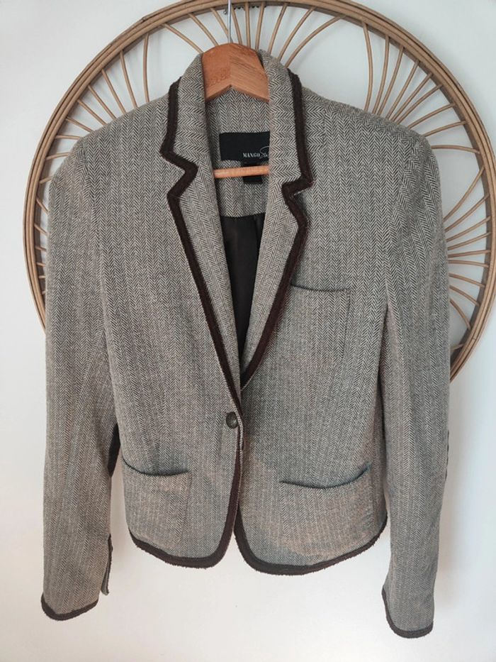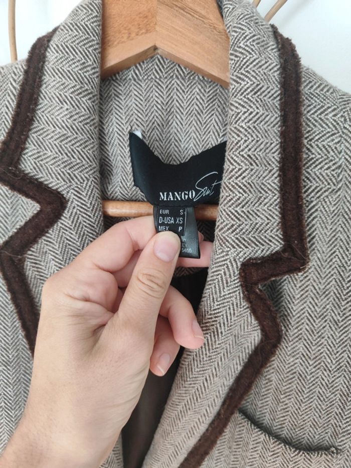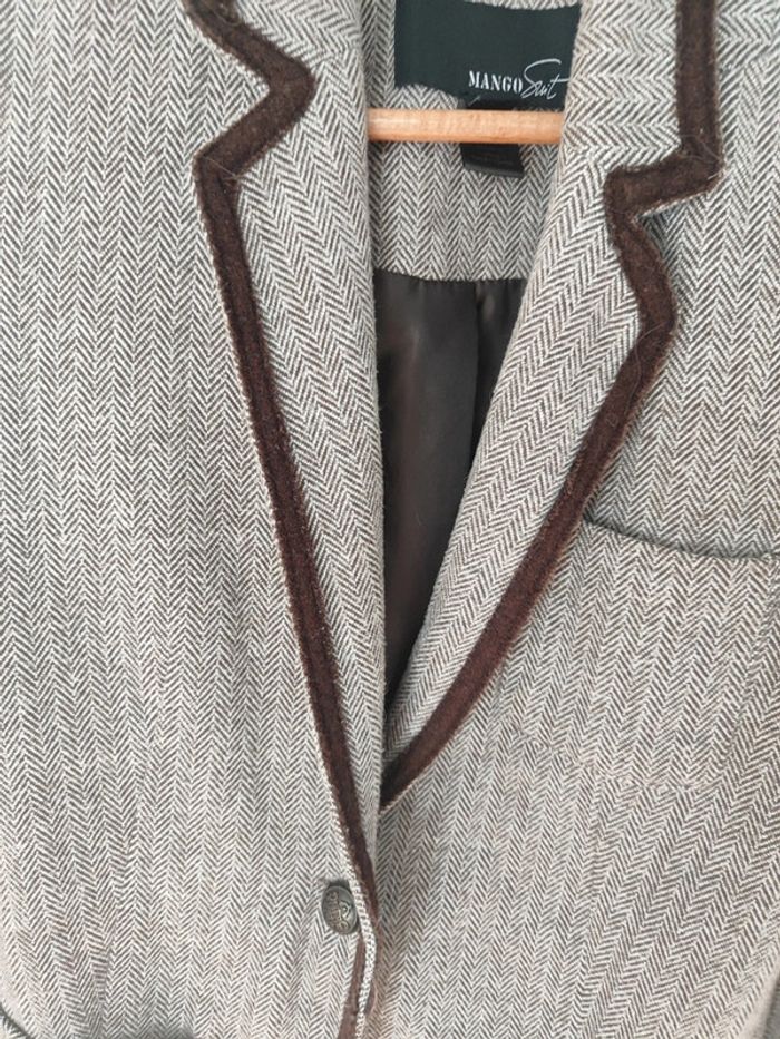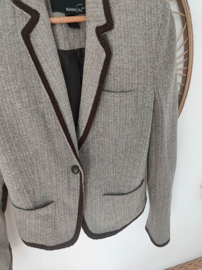 Blazer tailleur style équitation chic. Pied de poule marron et empiècements en velours daim marron Coupe magnifique Taille S mango