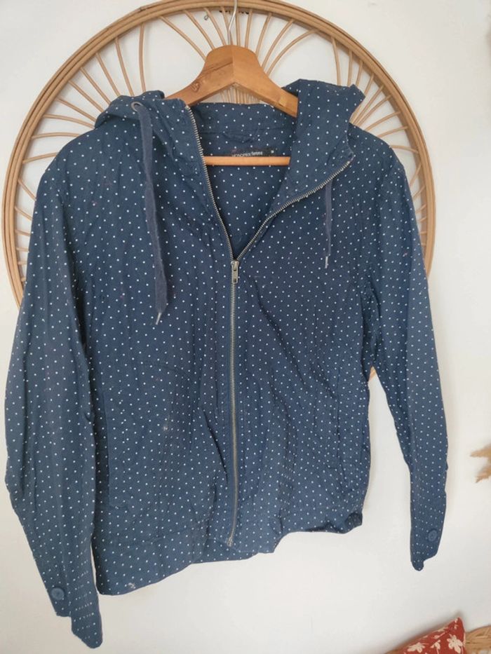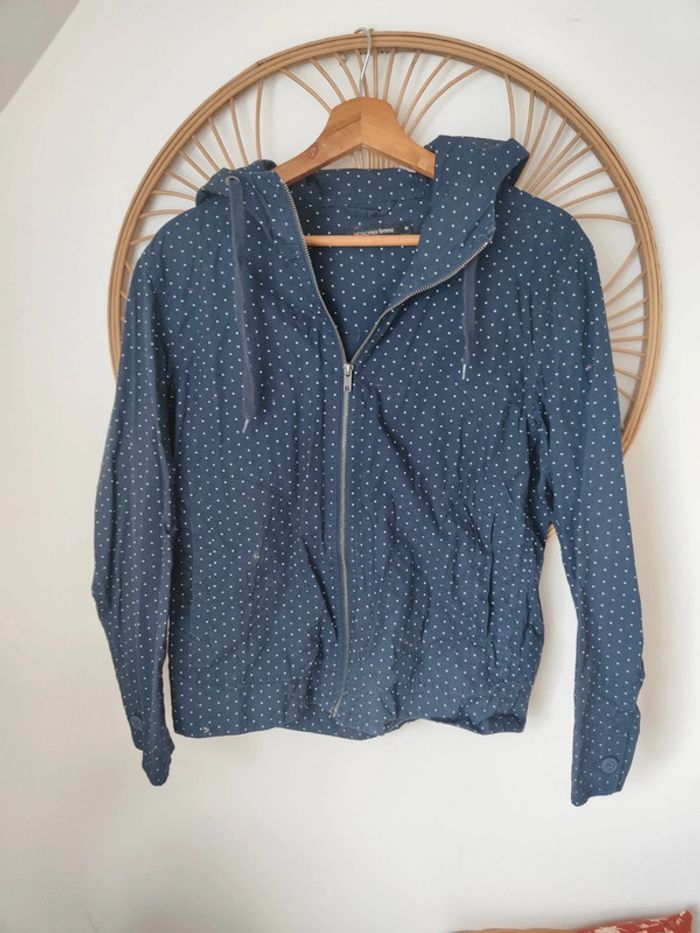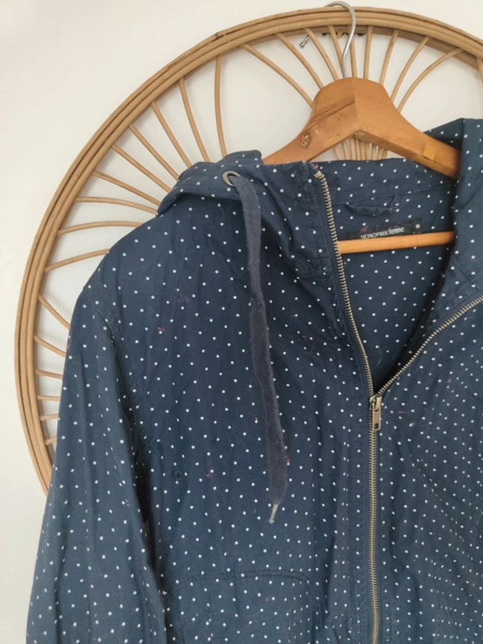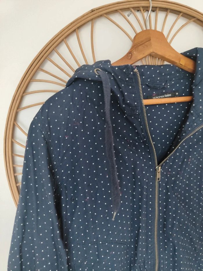 Coupe vent imperméable bleu marine à pois blancs À capuche Monoprix taille 36