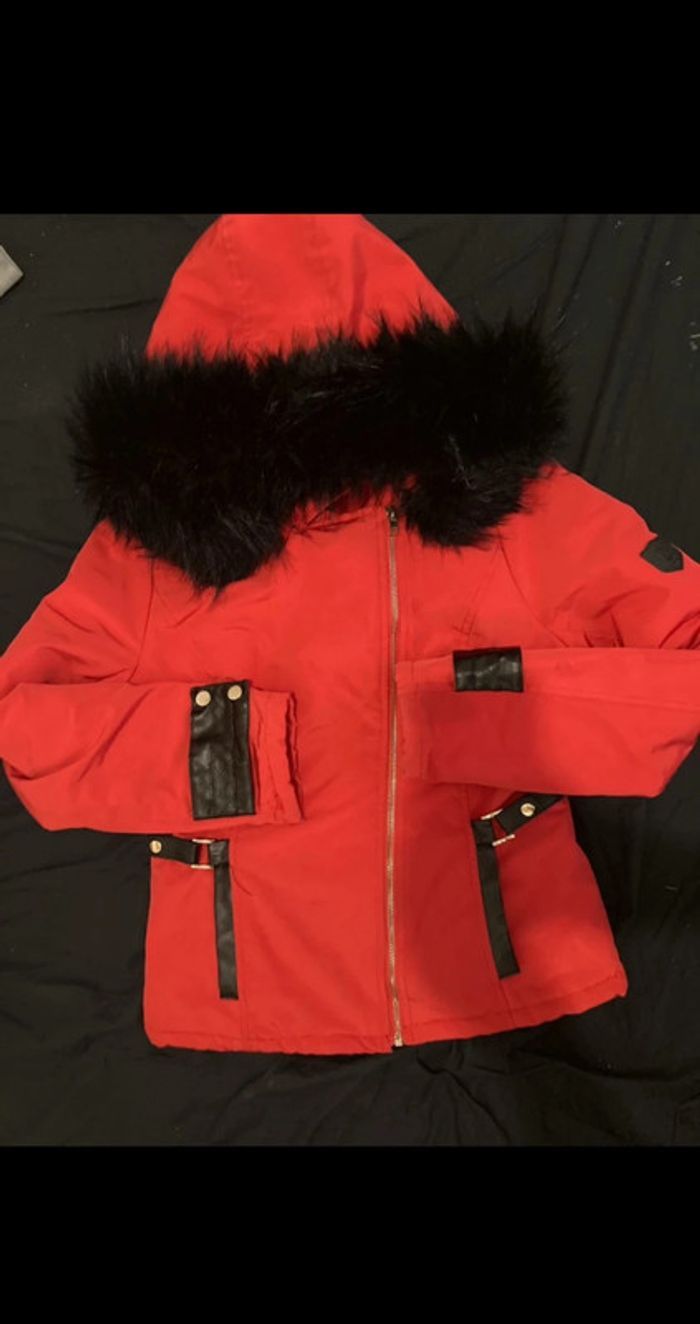 Manteau rouge à fourrure cintré Taille S - photo numéro 1