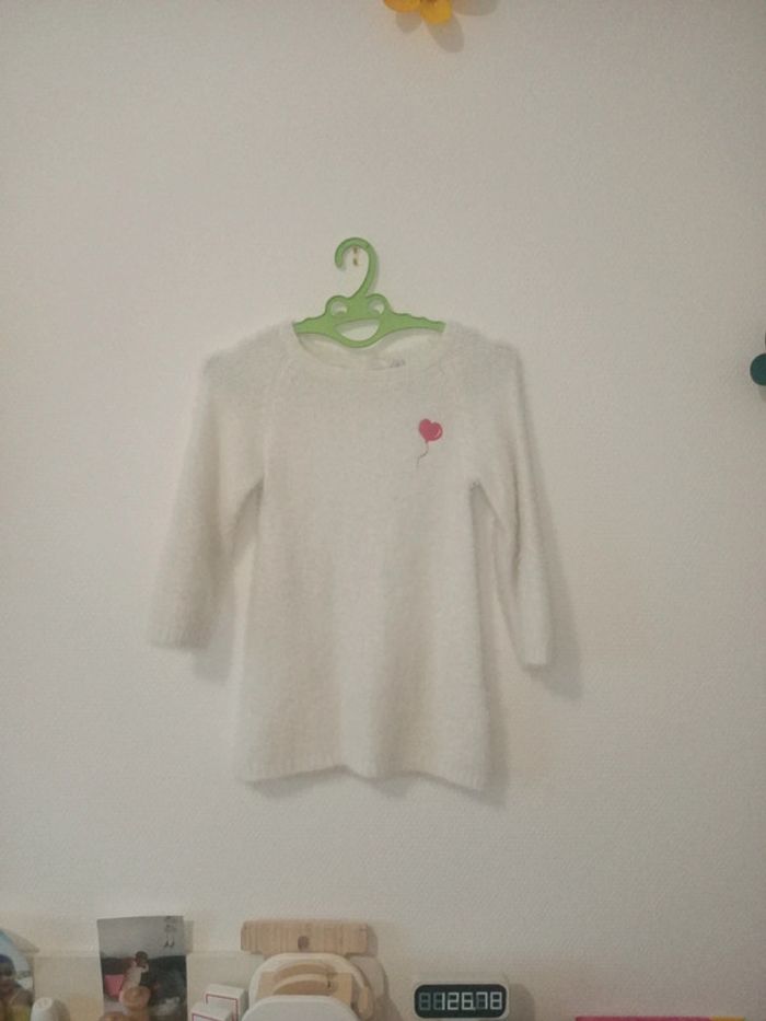 🌜 magnifique robe🌛 🎊Effet laine🎊 🌺Blanc cassé, fleur rose🌺 🌈 Boutonnières dans la nuque🌈 🪽Taille 24mois(taille grand)🪽 🌟 Parfait état 🌟 @bebefille24mois.aziz0110