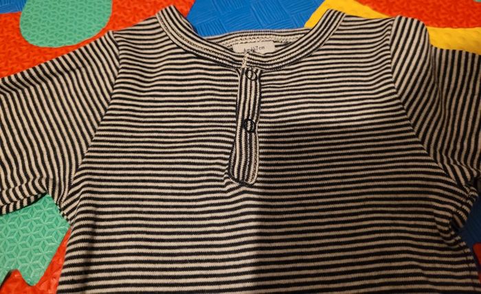 Ensemble mixte Petit Bateau taille 6 mois. Pantalon en tubique, rayé blanc et noir (milleraies) avec un petit lacet pour serrer la taille si besoin. 2 poches sur les côtés. Body rayé blanc et noir (milleraies) avec des boutons pressions sur le devant et à l'entrejambe. Col tunisien. Vêtements très peu portés, ils sont en parfait état. Achetés neufs en magasin. #T3_6mois_baptlily #T6_9mois_baptlily