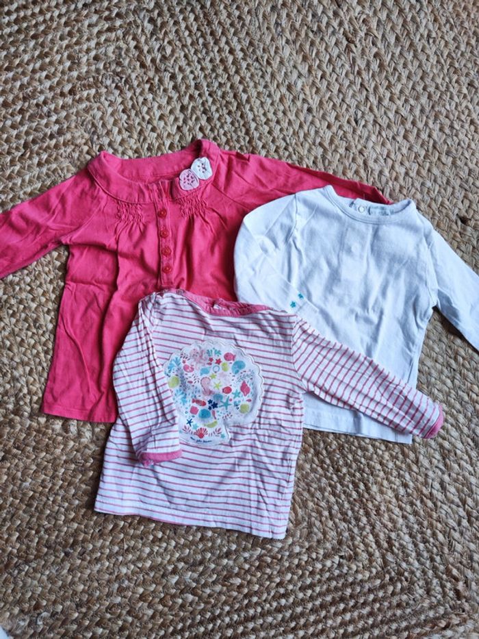 Lot 3 tee shirt ML rose 12 mois - photo numéro 1