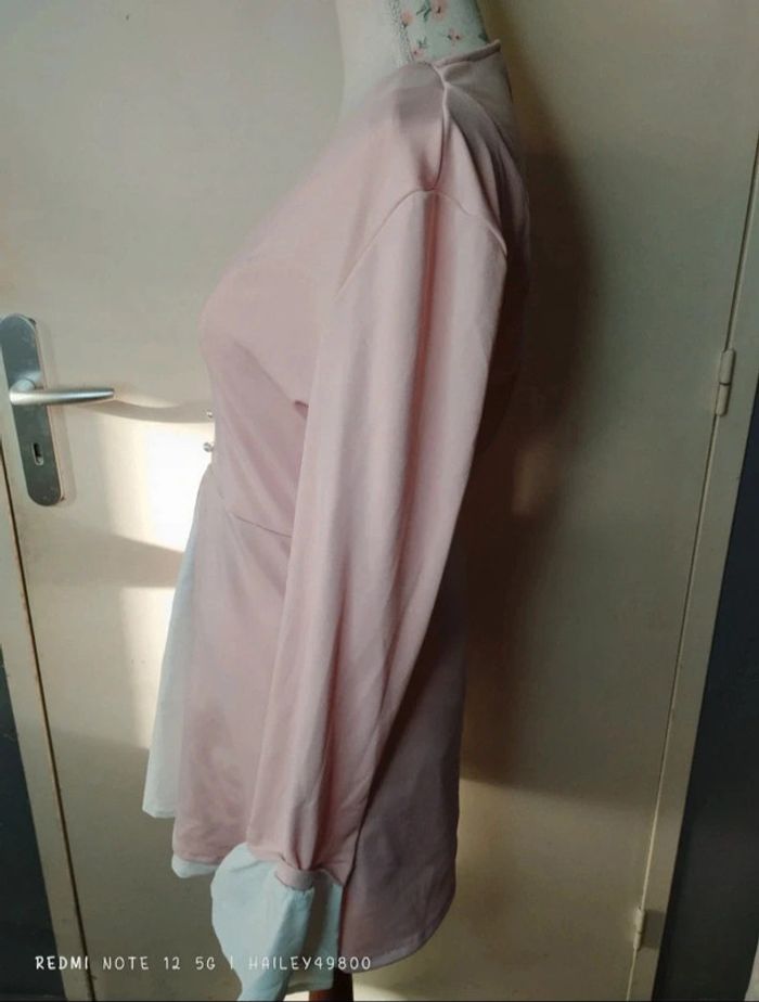 Jolie robe tunique taille M, de couleur rose pâle et blanc, en très bon état, #mhailey49800