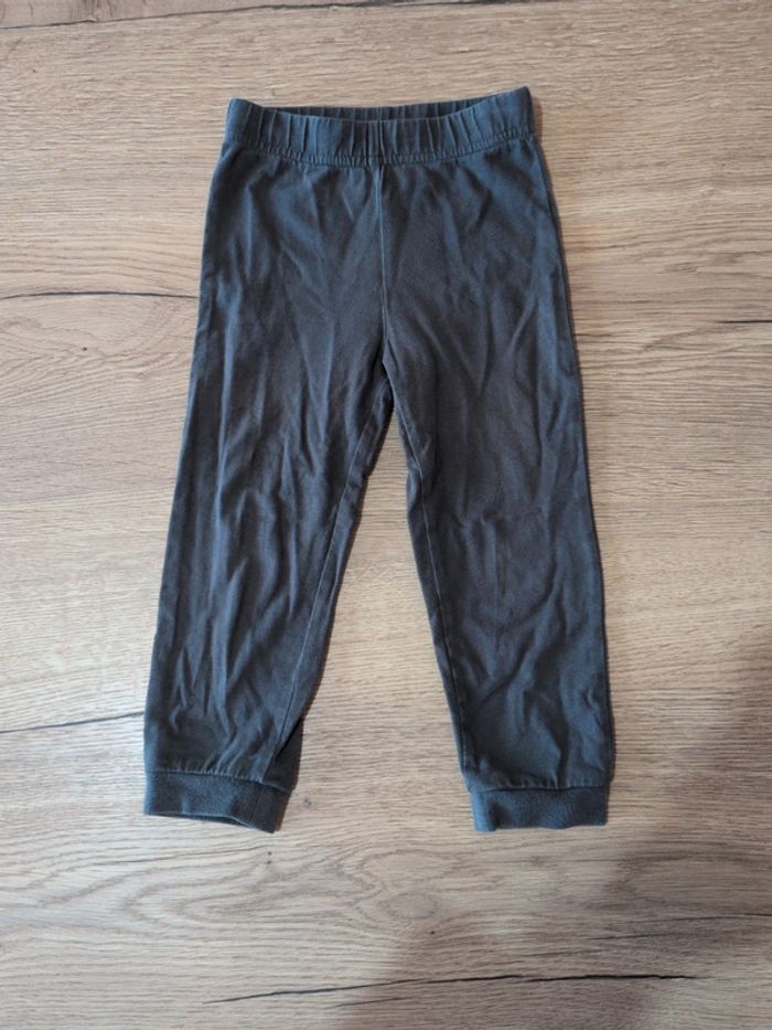 Legging gris foncé, taille correcte. De l'usure sur la couleur.