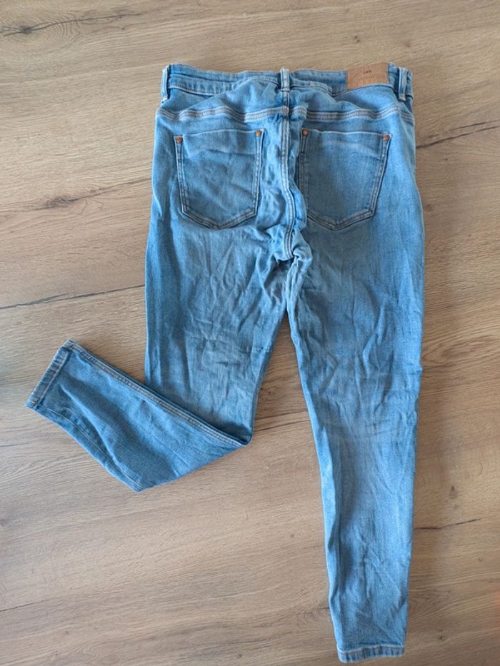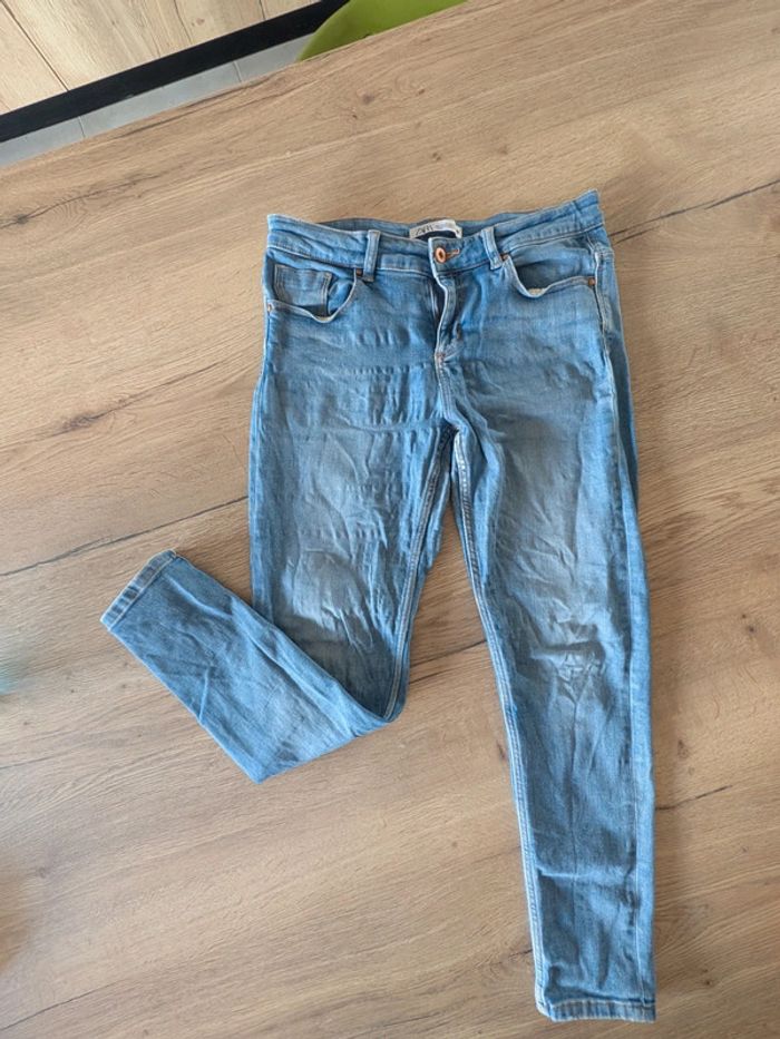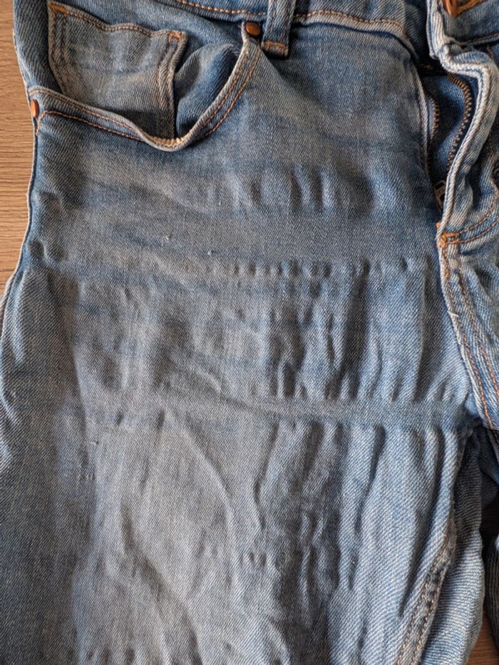 Pantalon bleu Zara, usure entre jambe devant et derrière, n'est pas visible porté