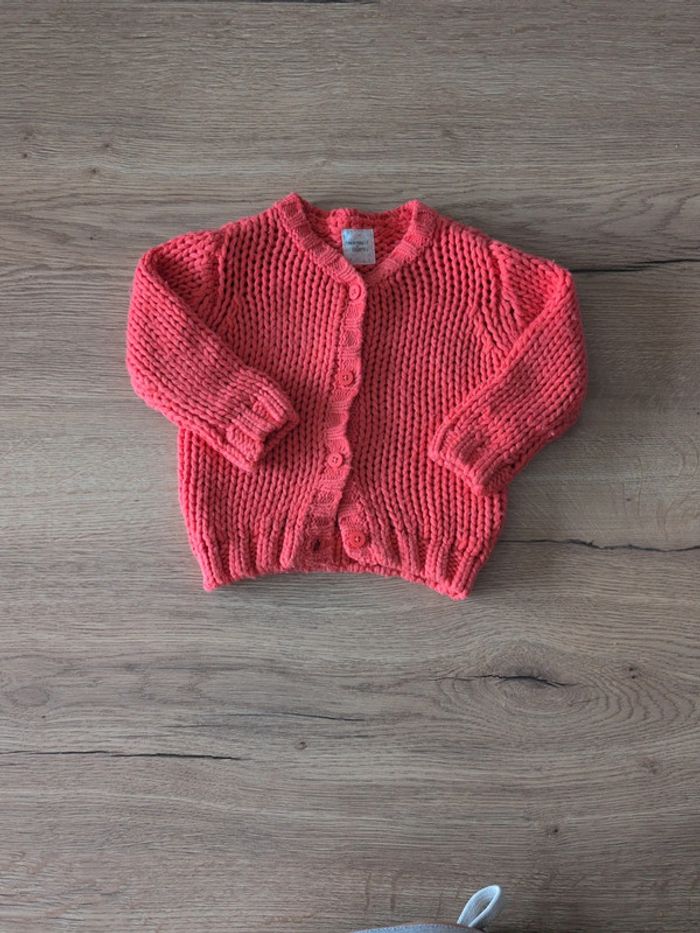 Gilet couleur corail à bouton. #giletfille9mois #tapealoeilfille