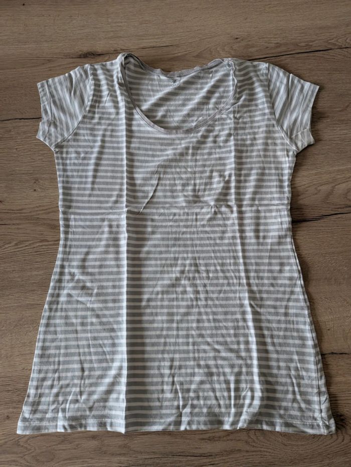 T-shirt rayé gris et blanc - Taille 44 - photo numéro 1