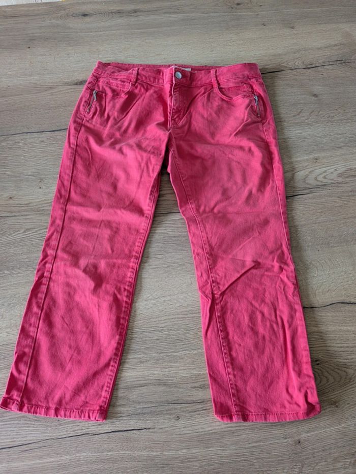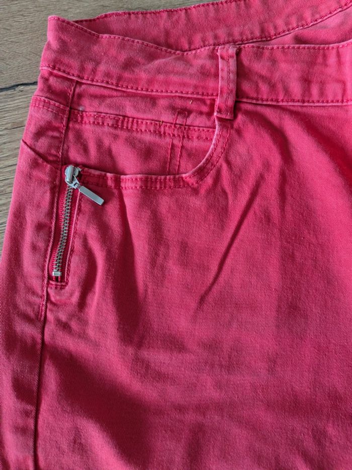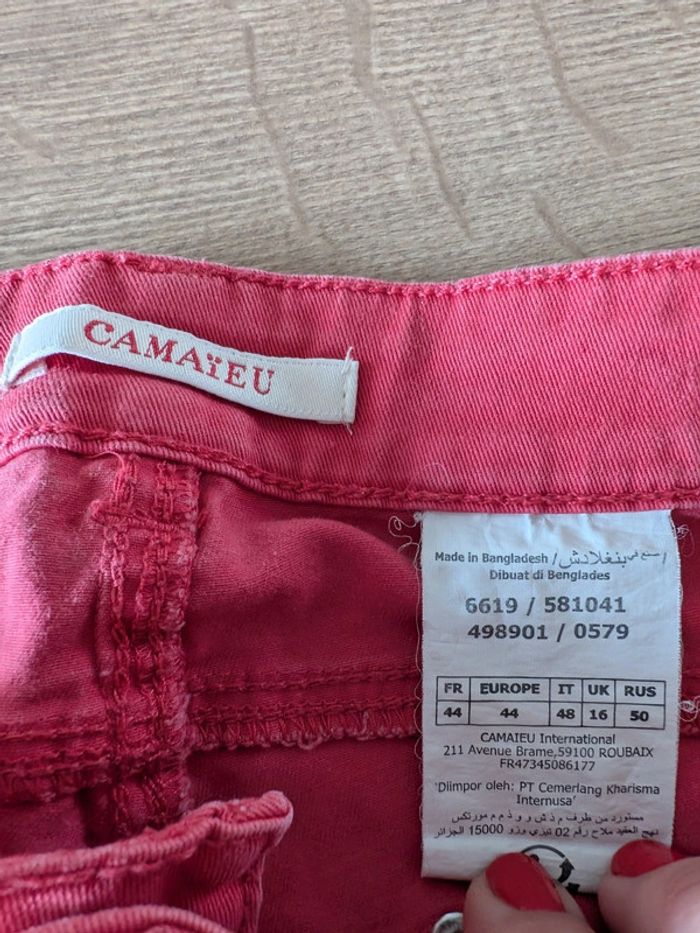 Pantalon pour femme de la marque Camaïeu, taille 44. De couleur rose, il apportera une touche de gaieté à votre garde-robe. La coupe est actuelle et confortable, idéale pour différentes occasions. Détails pratiques avec des poches et une fermeture éclair. Un peu d'usure sur la couleur voir la photo. #pantalonfemme #pantalon #camaieu #taille44 #rose #couleur