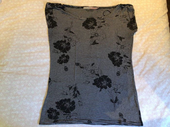 Tee shirt femme manches courtes Col rond Fleuri - uni noir et blanc Marque Jennyfer Taille L Neuf D'autres articles femme sont dans mon dressing sous #cocktail_fleurs_femme