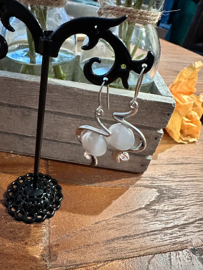 Boucle d’oreille rond blanc argenté - photo numéro 1