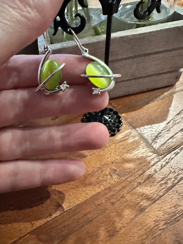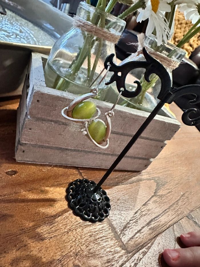 Boucle d’oreille verte et blanche argenté - photo numéro 1