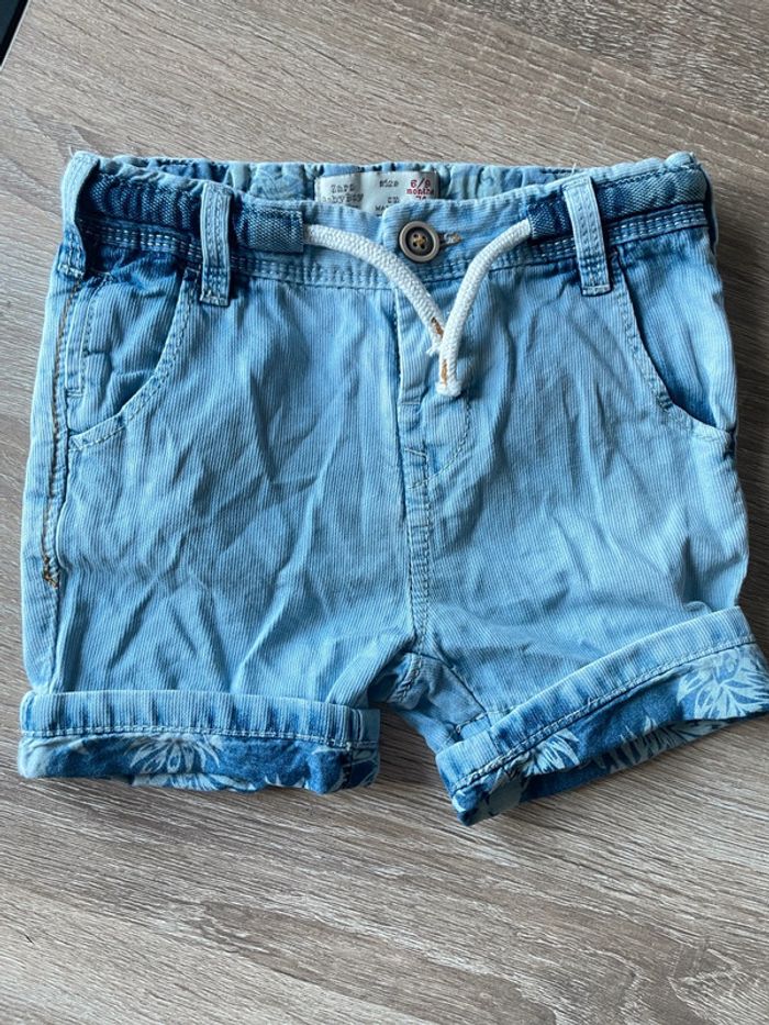 Short en jean avec revers imprimé palmier, peut de resserrer à la taille