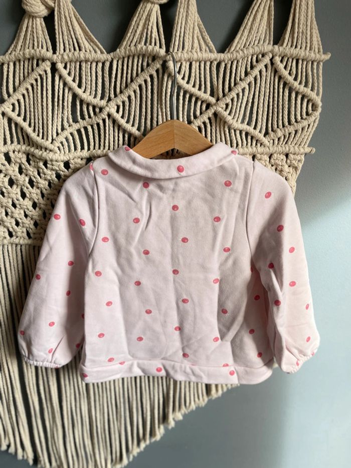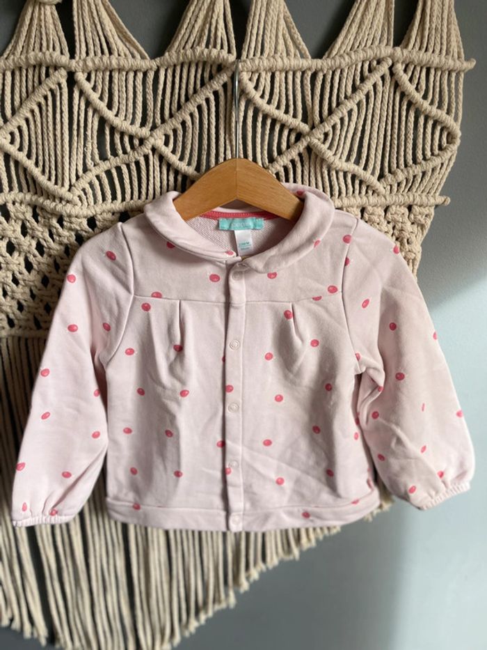 Gilet/veste en molleton fermeture à pressions imprimé petites pommes, col claudine