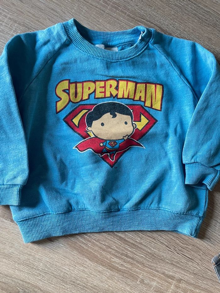 Ensemble avec un pull Superman et un jogging en molleton, effet chiné/usé