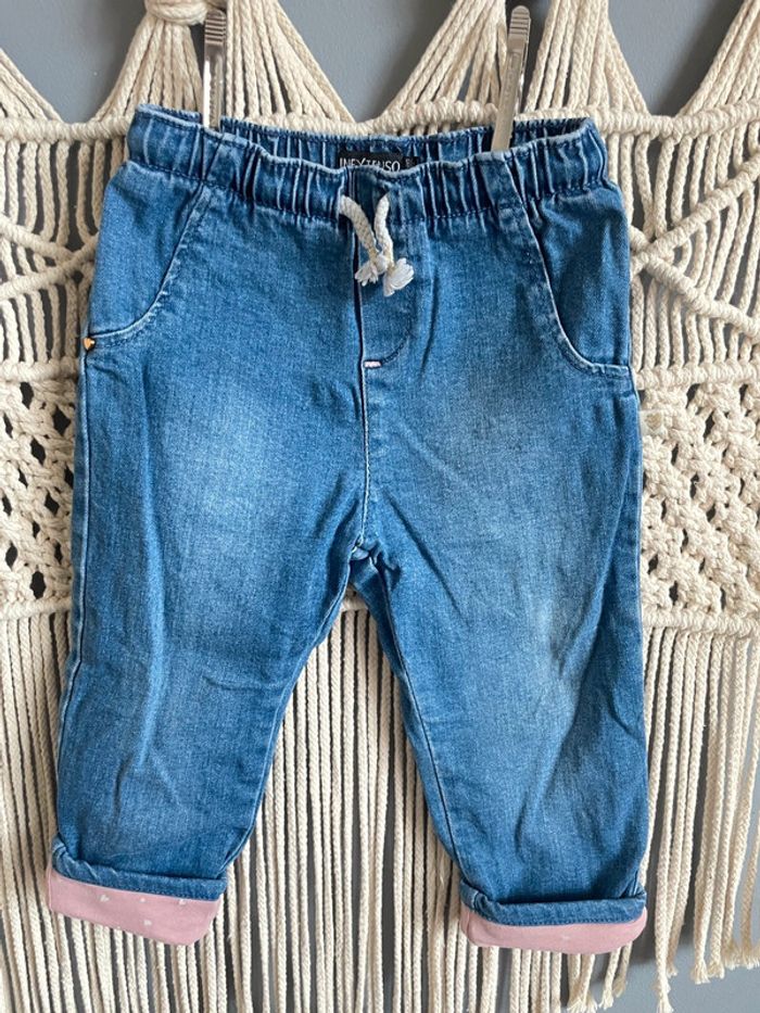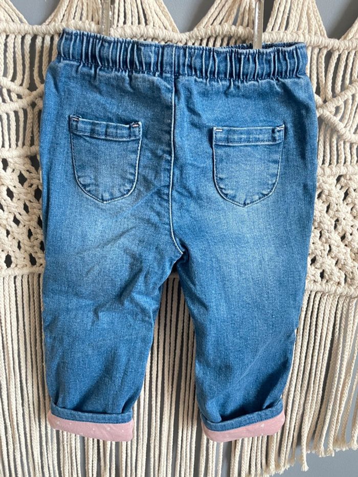 Jean épais avec doublure rose pâle imprimé petit coeur, taille élastiquée + cordon