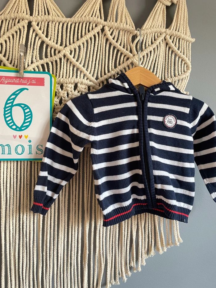 Gilet marinière avec capuche, 100% coton