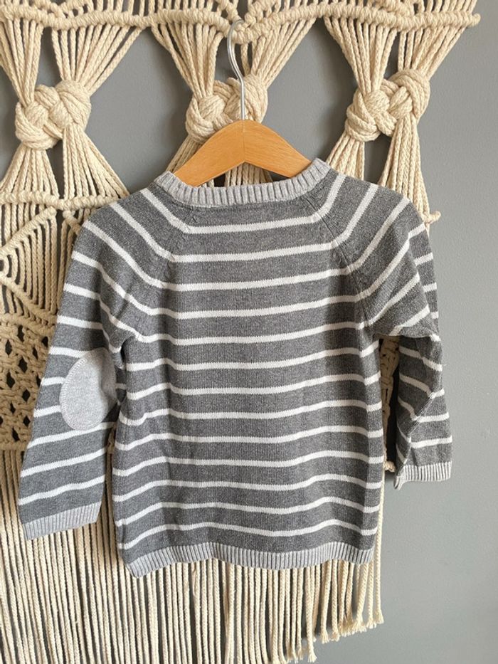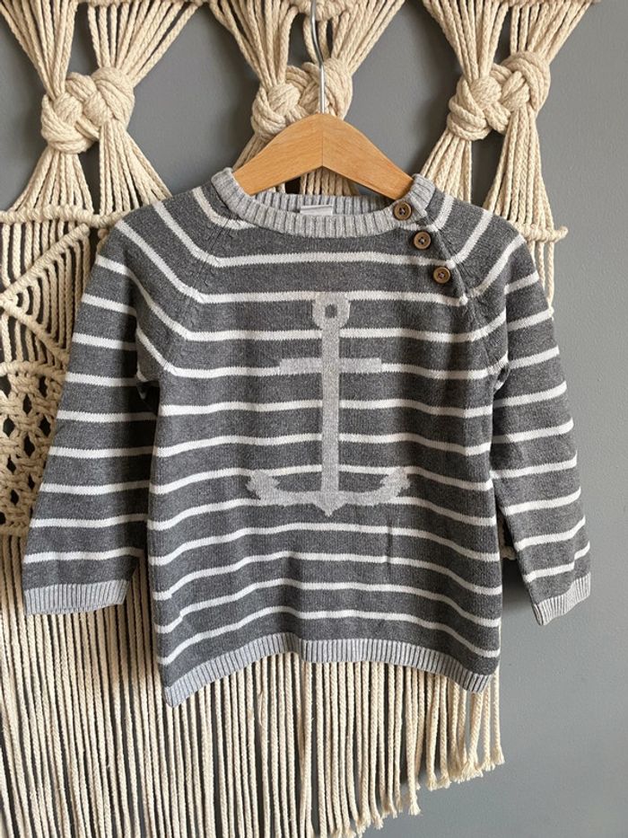 Pull rayé avec encre, bouton au niveau de l'épaule