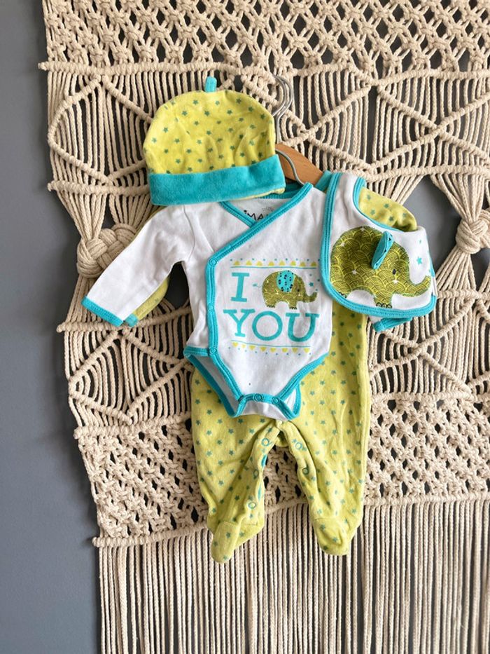 Lot body et pyjama velours + bavoir + bonnet - photo numéro 1