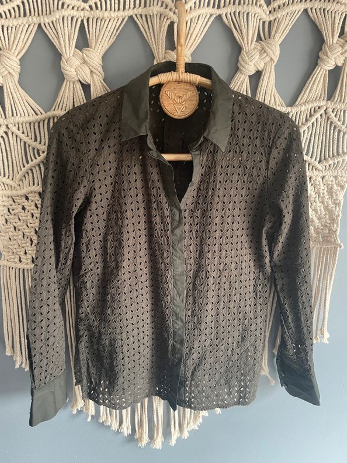 Chemise manches longues en broderie anglaise kaki, trop petite pour moi je fais un 38/40 actuellement.