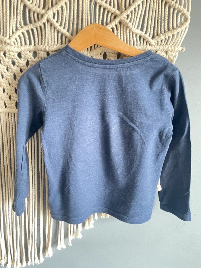 T-shirts manches longues, 1 rayé gris/bordeaux, 1 bleu avec inscription baseball