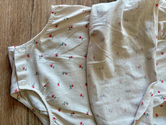 Robe à volant imprimée petites fleurs, pressions au dos et body intégré, taille 36m (94cm), 100% coton