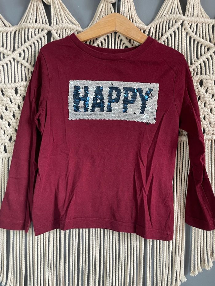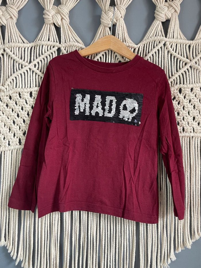 T-shirt manches longues avec sequins réversibles Happy/Mad tête de mort, suivant les émotions de l'enfant.