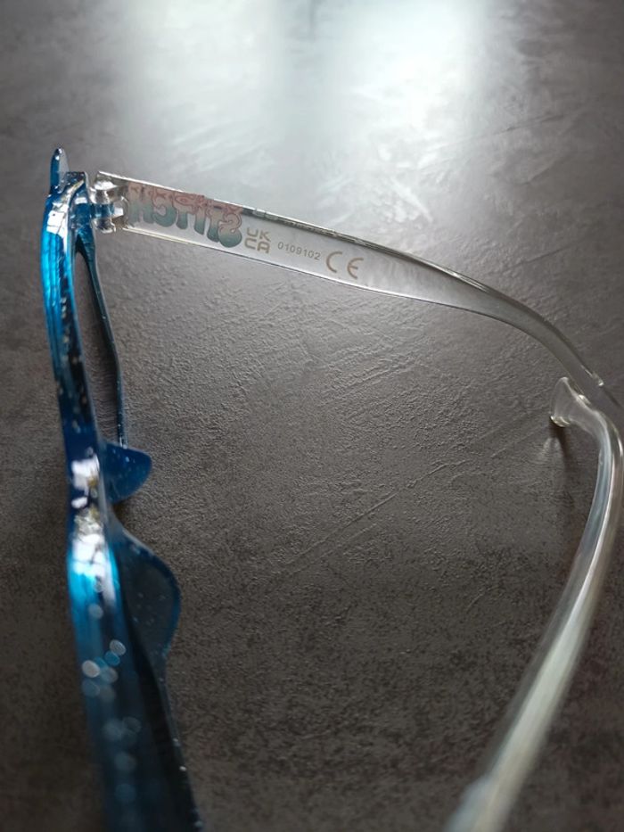 Je vends une paire de lunettes enfant . De marque stitch. Couleur bleu. Légère rayure sur un carreau.