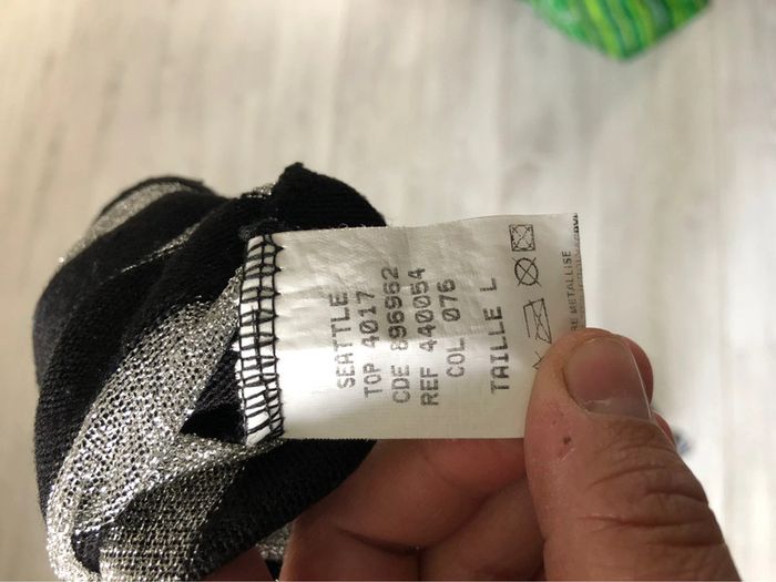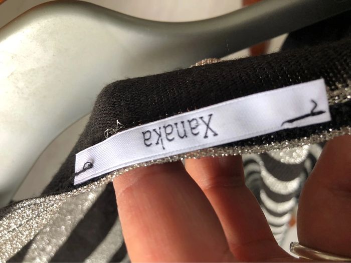 Pull femme rayures noires et argentées Taille L marque canal a en très bon etat
