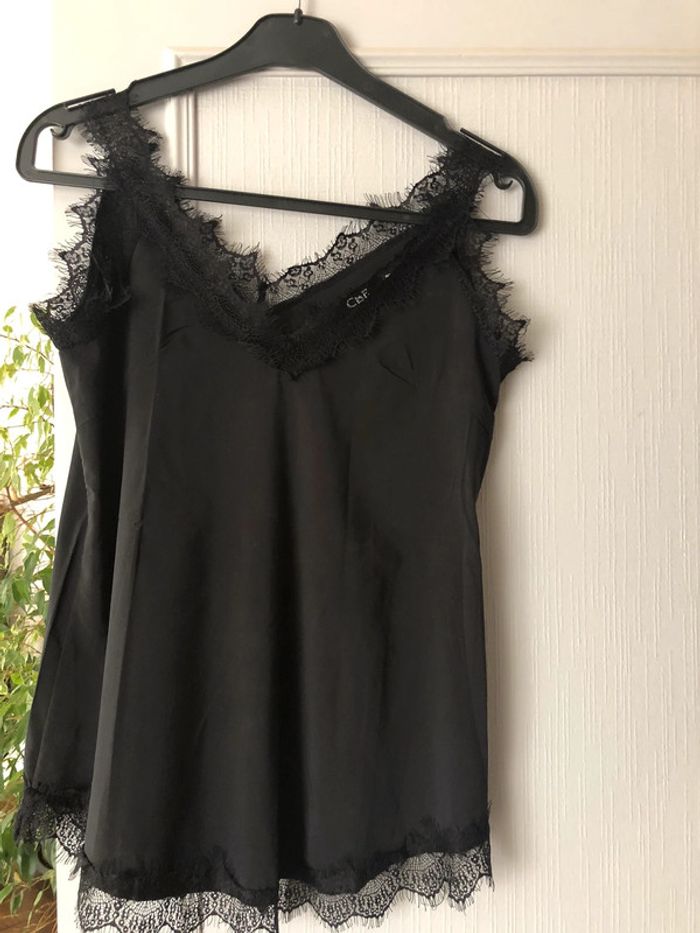 Top femme noir taille S tout ourle des dentelles noires Très bon état Marque CBR
