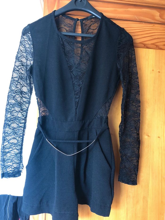 Robe short femme couleur noire Polystyrène elastane Manche et dos en dentelle noire Marque Tally weijl Taille XS En très bon état